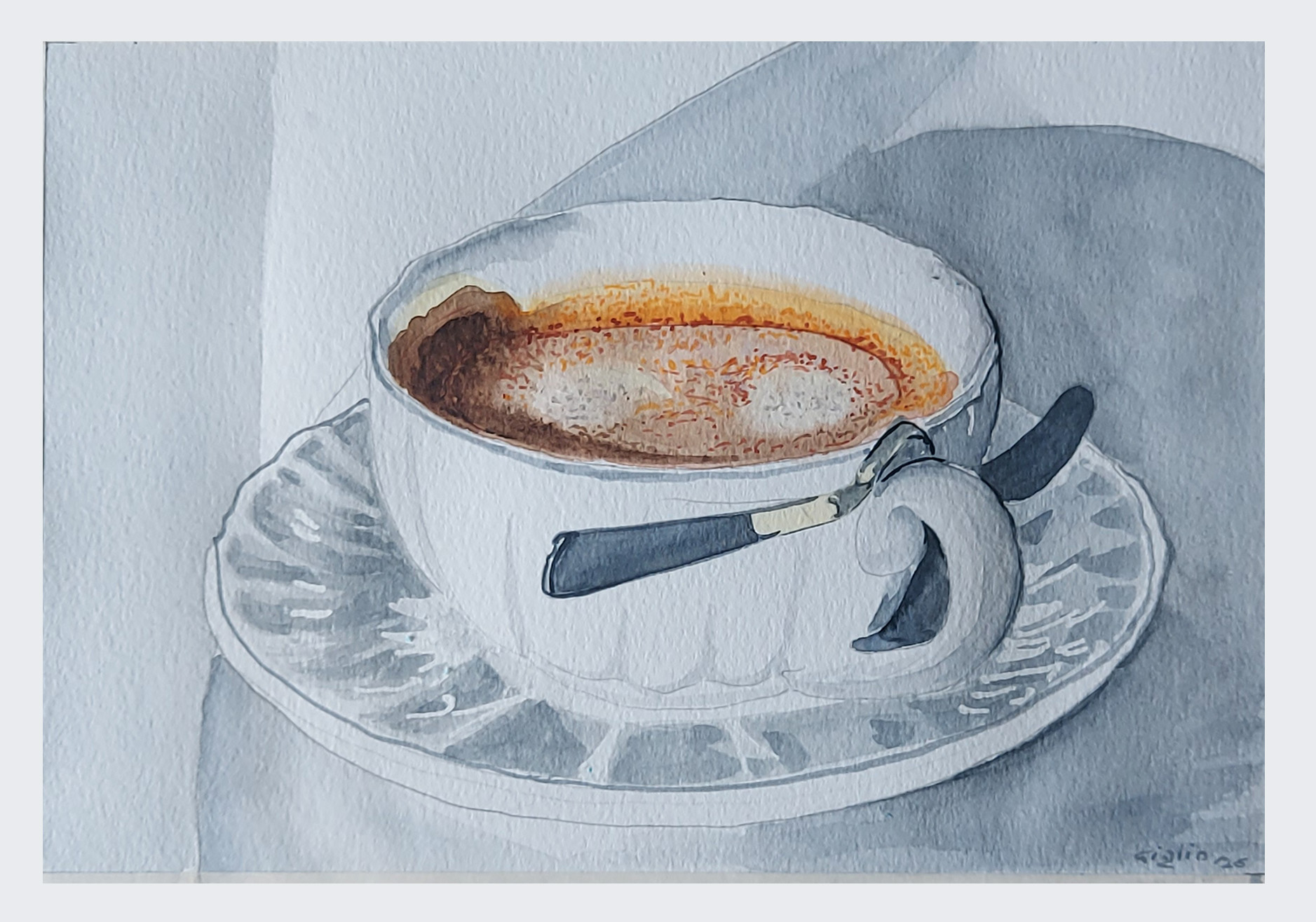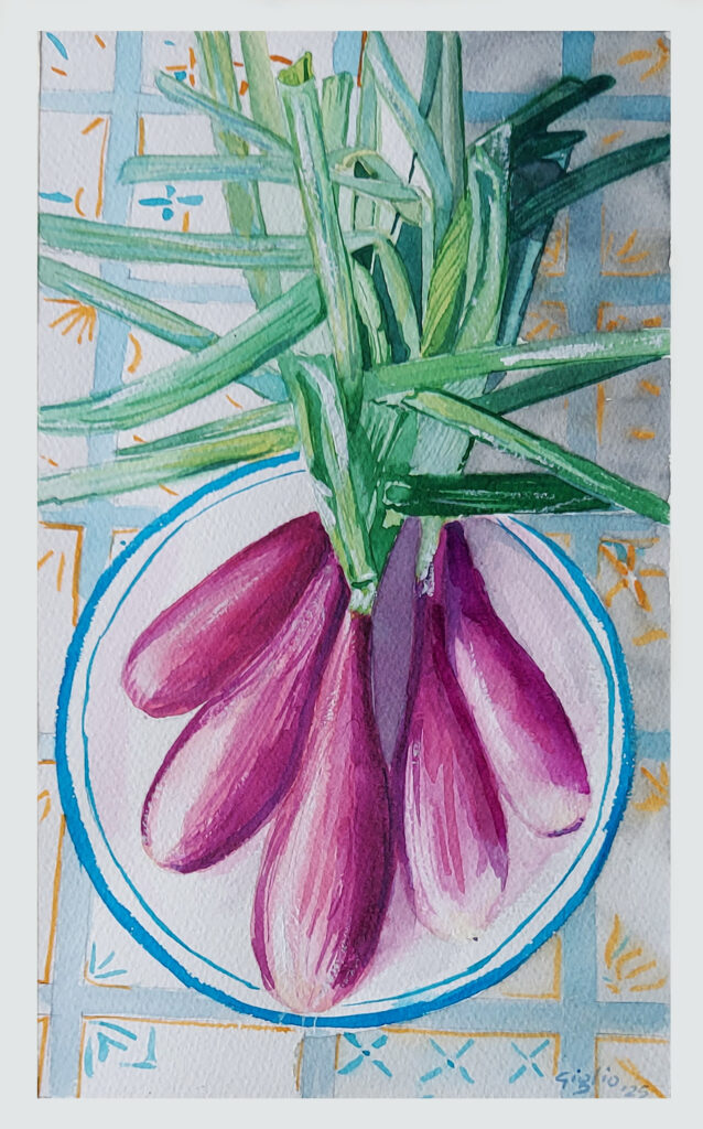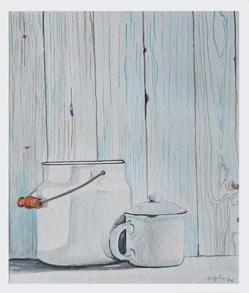 In queste composizioni, il tempo si sospende. Le nature morte non sono semplici esercizi di forma — sono meditazioni visive, atti di attenzione, piccoli racconti che si svolgono nel silenzio. Un pomodoro maturo, una foglia di basilico, un bicchiere vuoto: ogni oggetto diventa simbolo, memoria, gesto. Le nature morte ci invitano a guardare con occhi nuovi ciò che spesso passa inosservato, a trovare bellezza nel quotidiano, a riscoprire il valore del dettaglio. Questa sezione è un elogio alla semplicità, alla contemplazione, alla poesia che nasce dalle cose ferme. [A.I.]