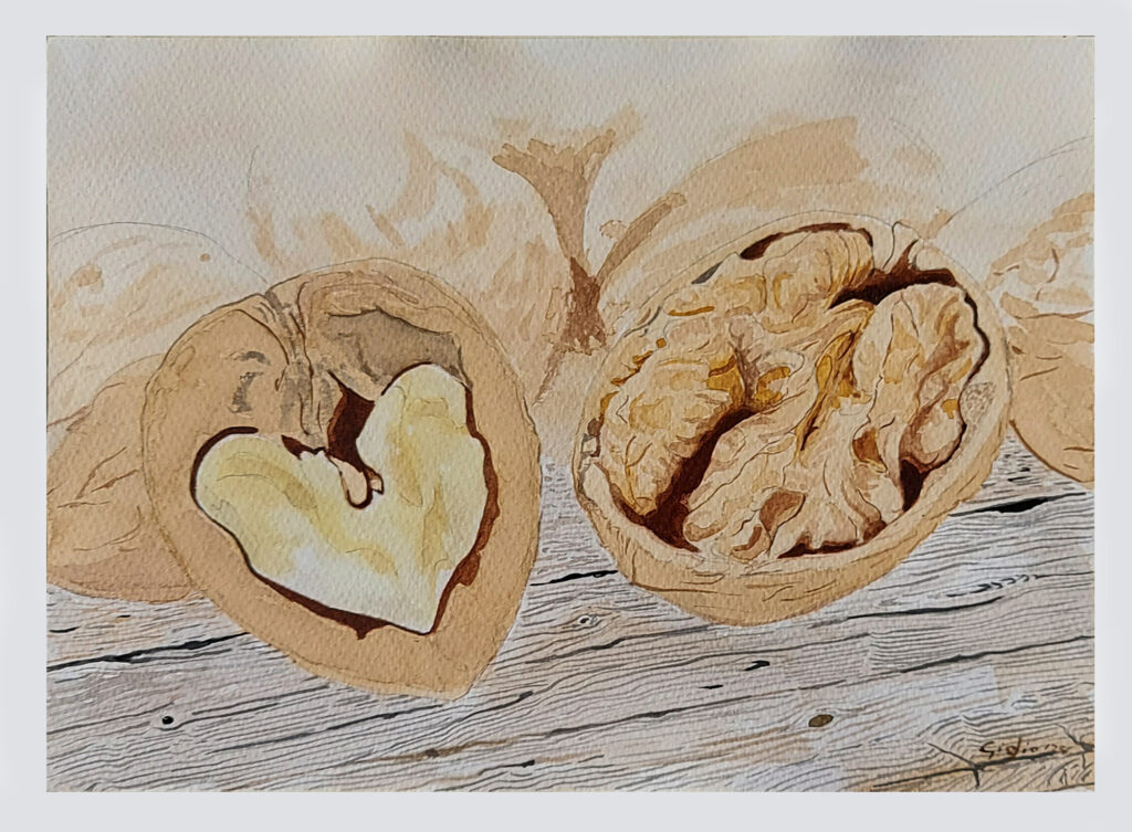 Il tema della natura morta mi ha riportato subito ai miei anni di Liceo Artistico ed alla materia dell’Ornato Disegnato (allora si chiamava così), quando l’insegnante preparava su una base, spesso un trespolo, una composizione con quello che si aveva a disposizione: brocche, bottiglie, frutta, qualche panno e verso gli ultimi anni anche qualche gesso, unificando Ornato e Figura disegnata. Con tutto questo amarcord come potevo fare a meno di questa tematica?